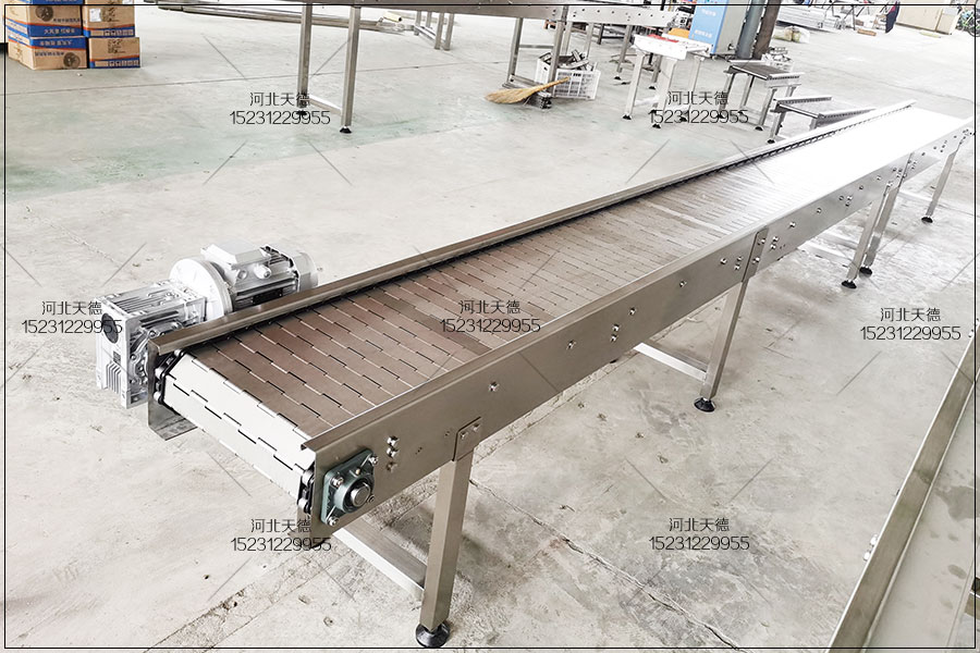 2、選用不同形式的平板鏈,可實現平面輸送、平面轉彎、提升下降爬坡等各種功能。