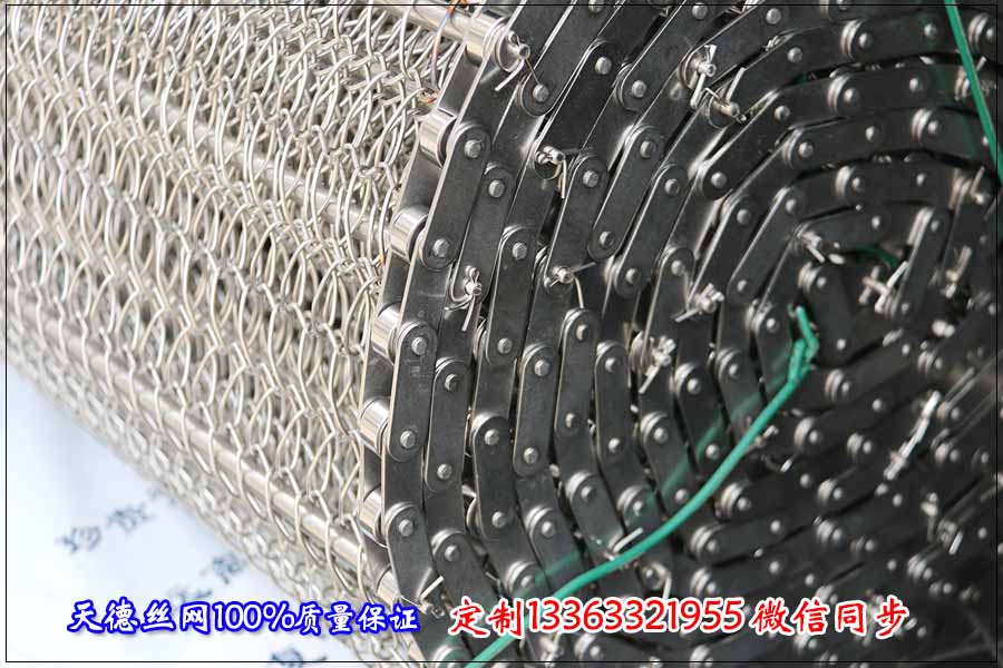 鏈條網帶簡介:鏈條式網帶是由鏈條驅動的輸送網帶,一般都由鏈條帶動小軸再帶動網帶運行。 網帶都采用軋牙串條、左右網條二根串,并大小網條連接而成,大網條內穿進小軸,小軸二端穿入鏈條孔,從而達到鏈條驅動輸送網帶。鏈條網傳動平穩、傳動力矩小。